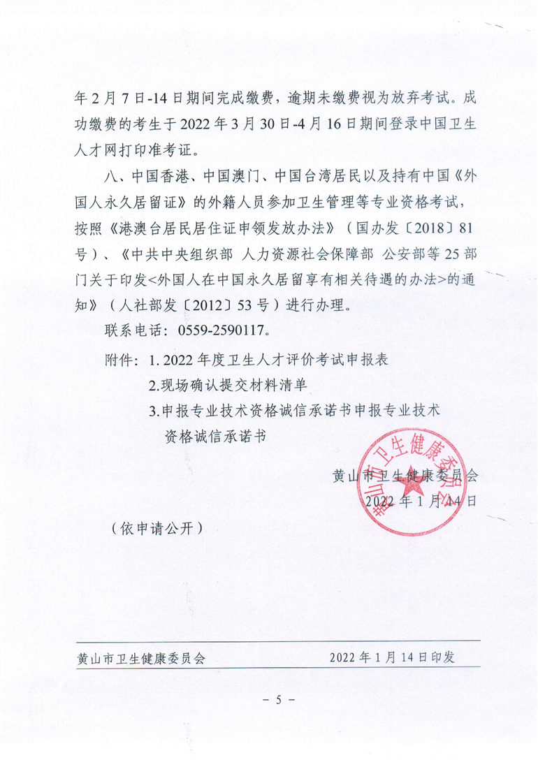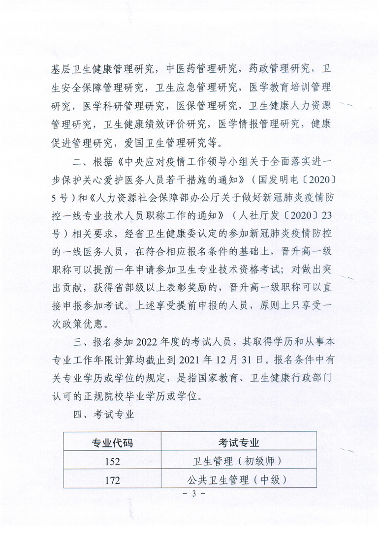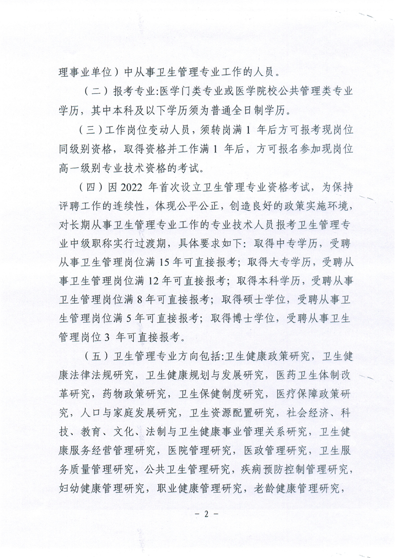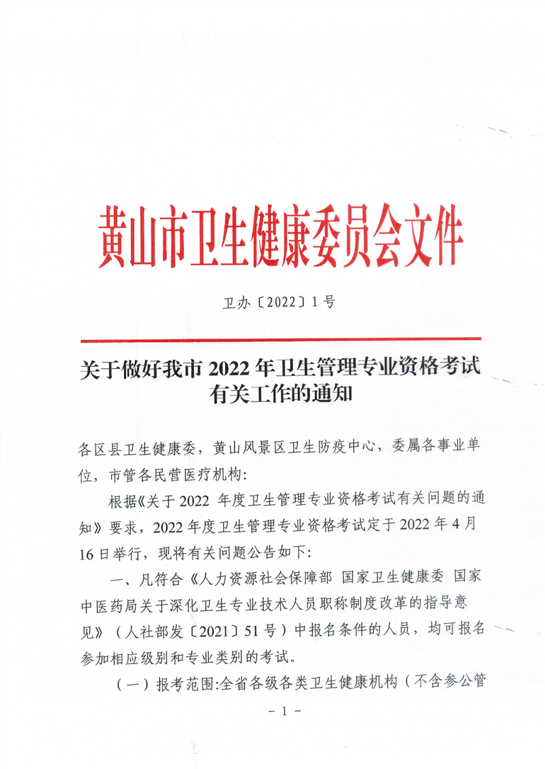 卫办 1号关于做好我市2022年度卫管考试的通知