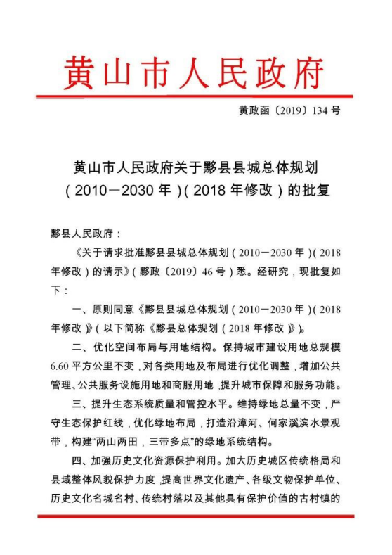 为深入贯彻落实十九大精神,响应国省战略要求,促进黟县社会经济全面稳定发展,推进国家“徽文化生态保护实验区”、皖南国际文化旅游示范区、黟县国际乡村旅游综合示范区的建设,经黄山市人民政府批准,黟县人民政府2018年修改编制《安徽省黟县县城总体规划(2010-2030)》。