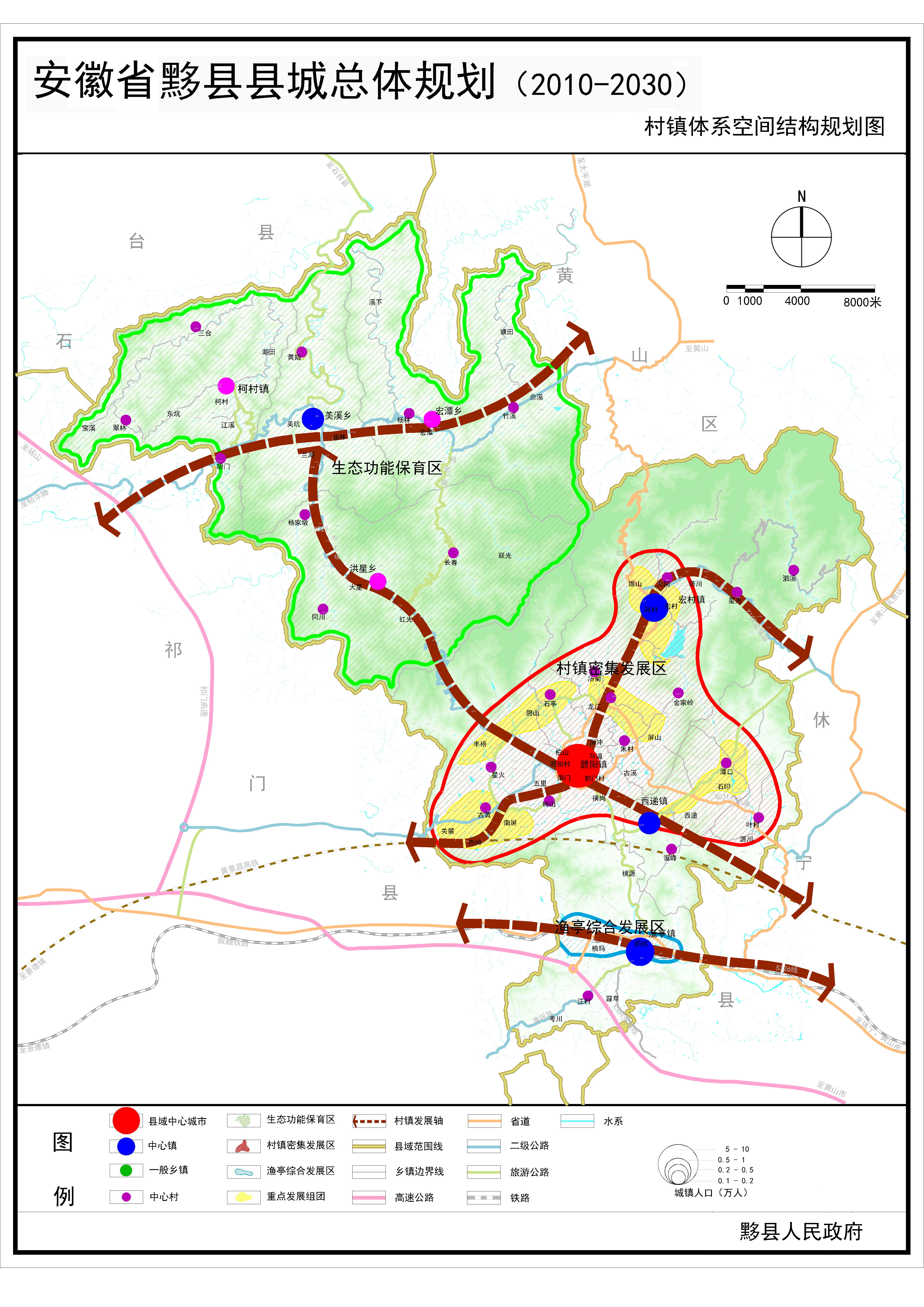 在县域培育形成沿218省道、沿黟七线、沿太平湖至牯牛降旅游公路、沿326省道等四条村镇发展轴。推进村镇发展轴的快速道路系统和公交系统建设,提高中心城市对全县域的服务辐射能力,促进村镇发展轴沿线地区的内部分工合作和对外交通条件改善,推动全县一体化发展和经济社会发展水平整体提升。