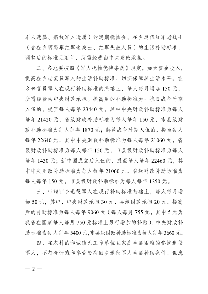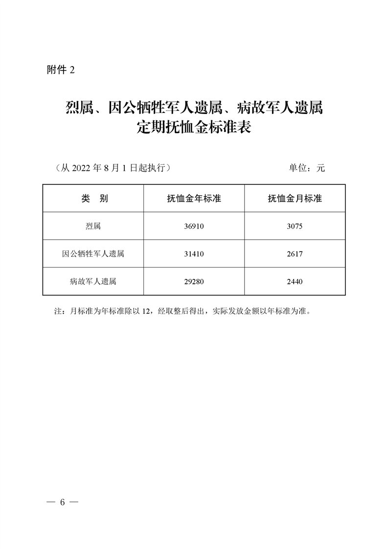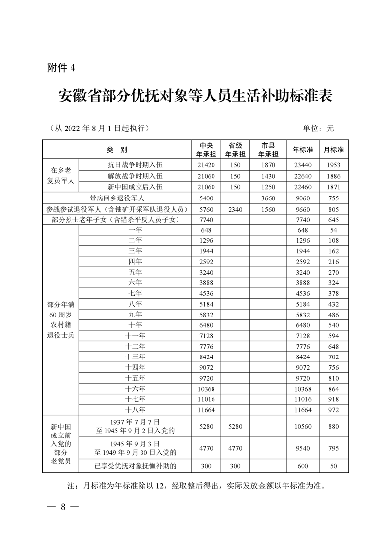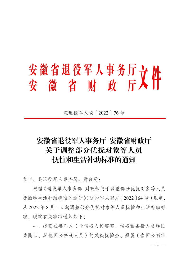 关于调整部分优抚对象等人员抚恤和生活补助标准的通知(皖退役军人秘〔2022〕76号)