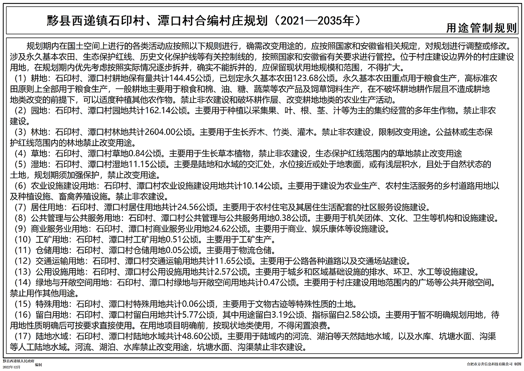 【区域规划】西递镇石印村、 潭口村合编村庄规划(2021~2035年)公示