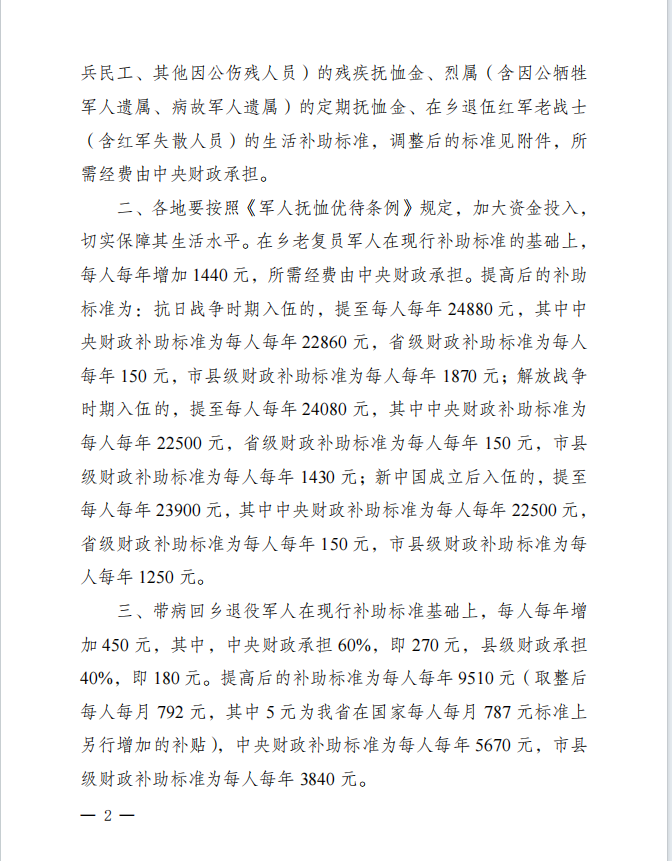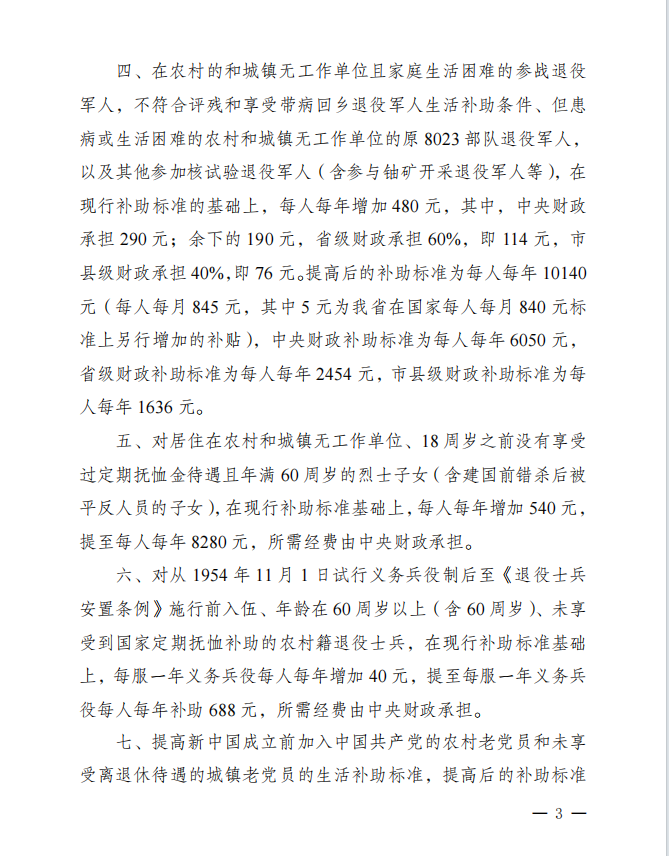 关于调整部分优抚对象等人员