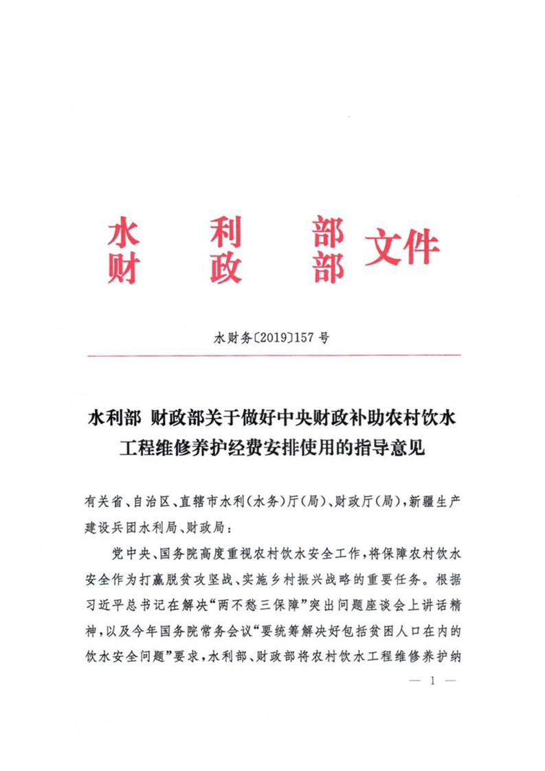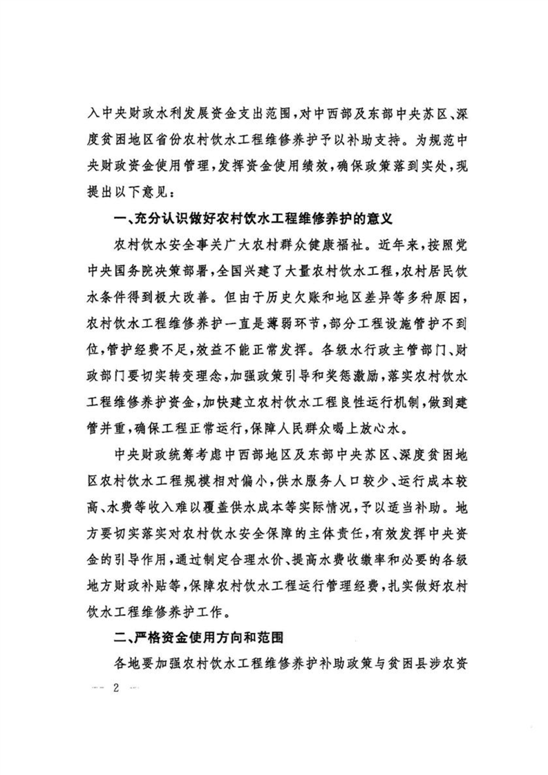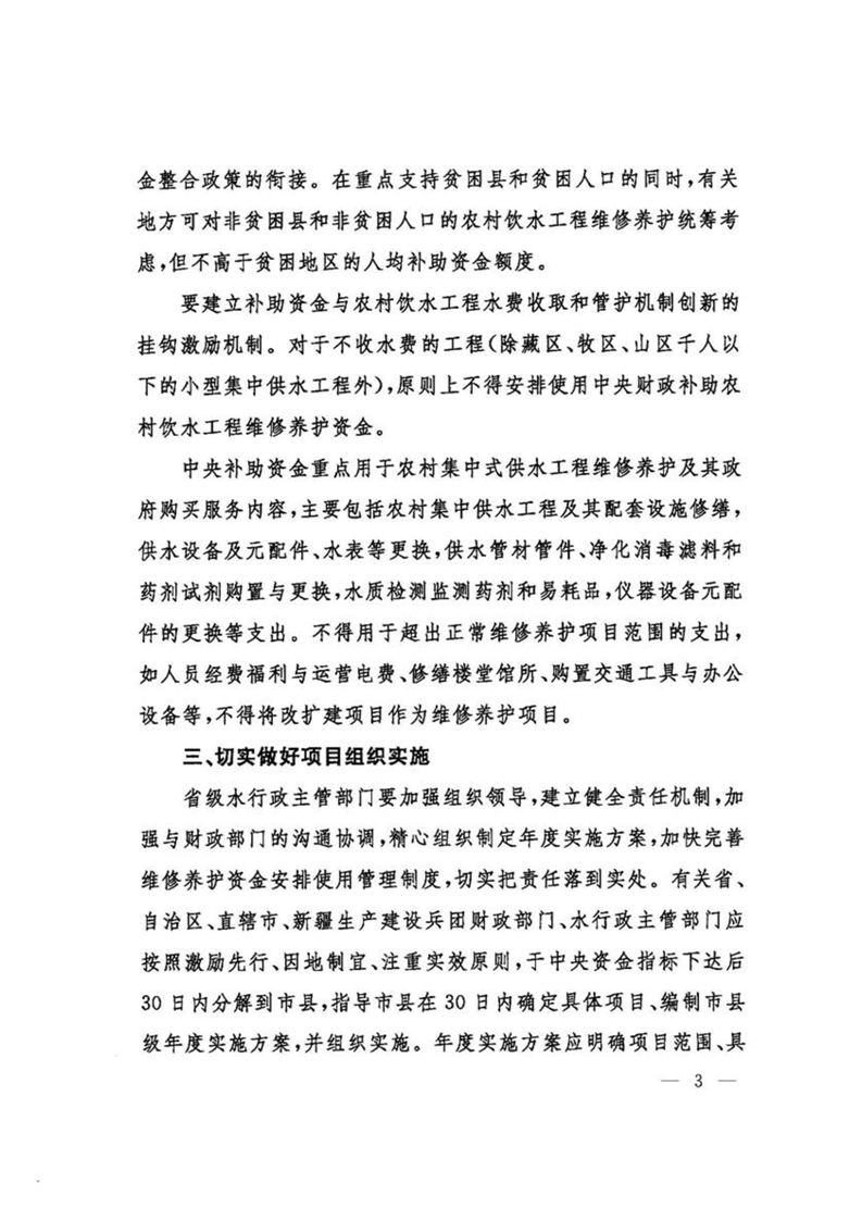 水利部 财政部关于做好中央财政补助农村饮水工程维修养护经费安排使用的指导意见(继续沿用)