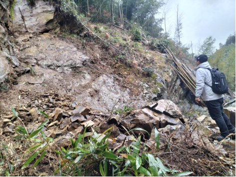 332地质队专家刘亮、周兴东结合宏村镇地形地貌特点及汛期降雨分布情况,提前梳理宏村镇辖区内已登记的滑坡、泥石流、不稳定斜坡等地质灾害隐患点台账,制定“一点一策”核查方案。核查过程中,工作人员携带测绘仪、裂缝仪等专业设备,深入各村组隐患点现场,重点排查坡体稳定性、排水系统畅通情况,对新增裂缝、土体松动等潜在风险点进行精准定位。