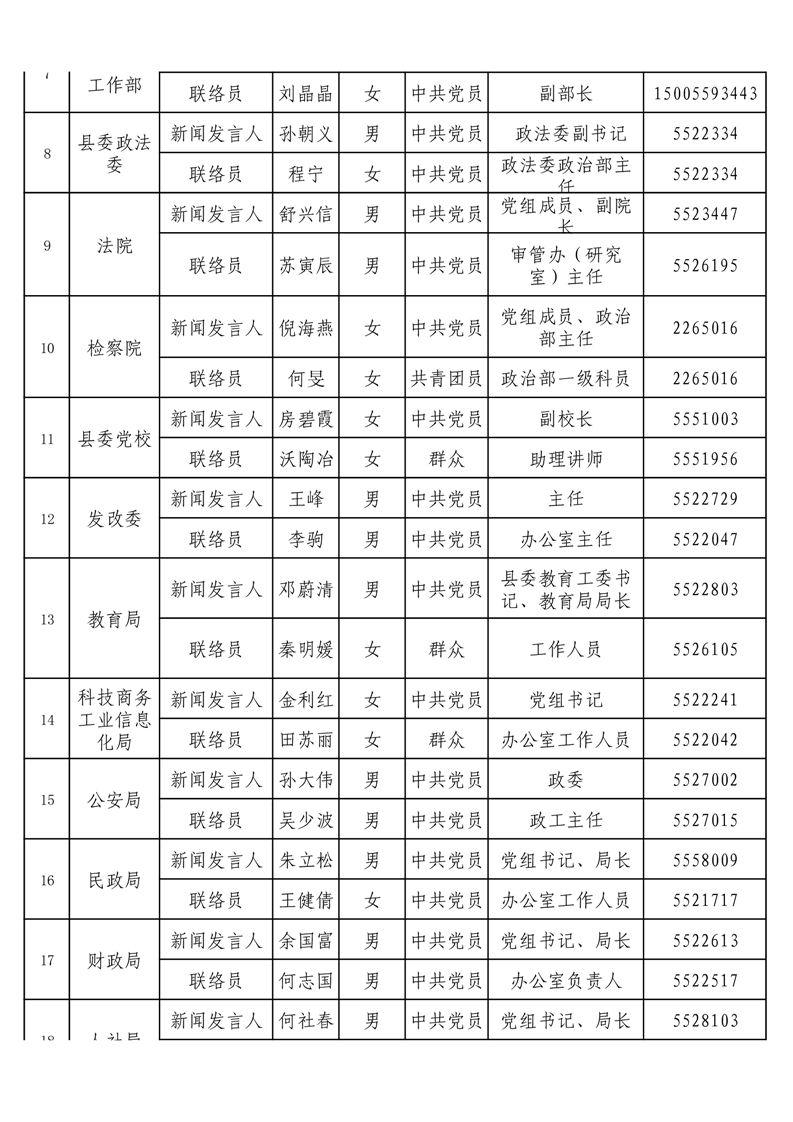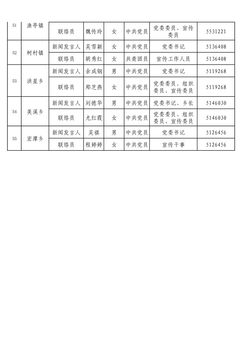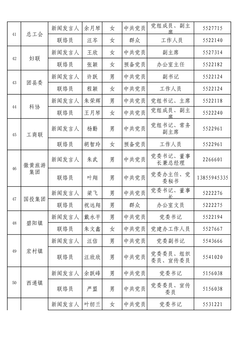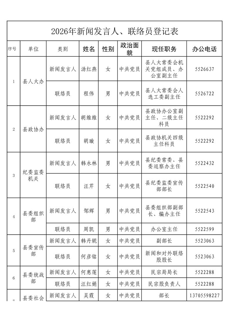 黟县2026年新闻发言人、联络员名单