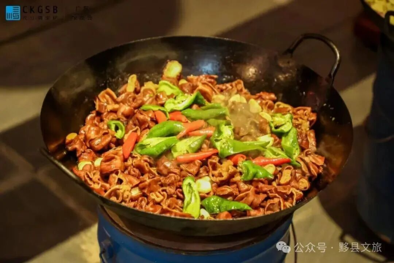 干锅肥肠:徽州农家的经典做法,肥肠洗得干干净净,爆炒后香辣入味,越嚼越香,是下饭的“神器”;