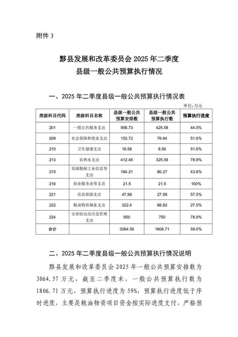 黟县发展和改革委员会2025年二季度县级一般公共预算执行情况.doc
