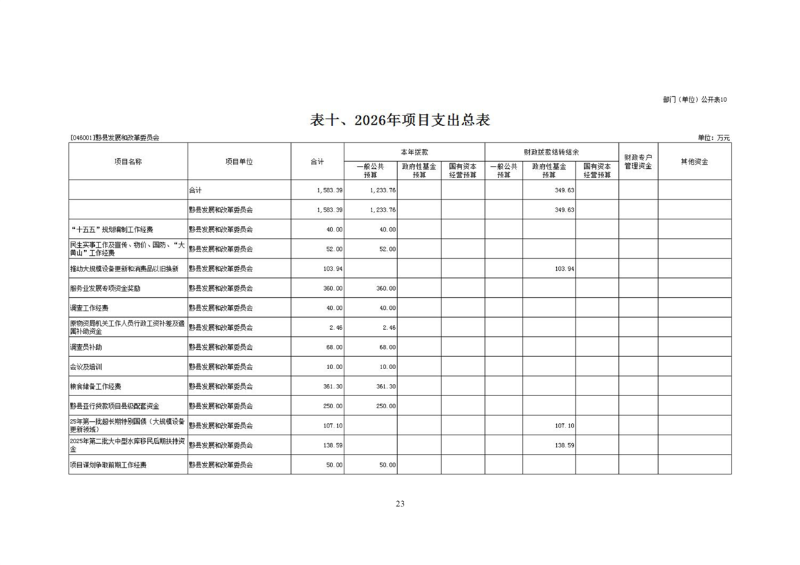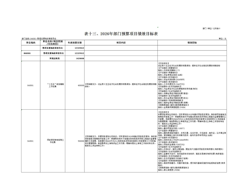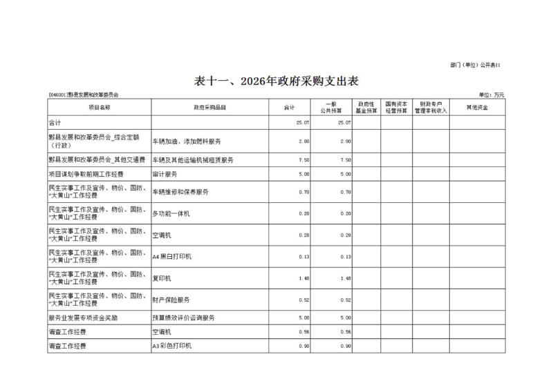 黟县发展和改革委员会2026年部门预算