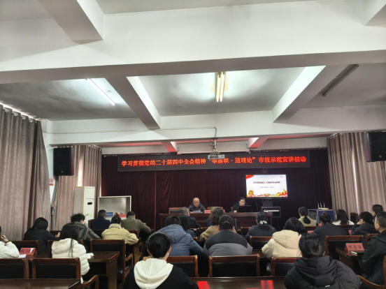 报告会紧紧围绕学习贯彻习近平总书记在党的二十届四中全会上的重要讲话精神和全会《建议》,从党的二十届四中全会是在即将进入基本实现社会主义现代化夯实基础、全面发力的关键时期召开的一次十分重要的会议,准确把握“十五五”时期在基本实现社会主义现代化进程中的重要地位,深刻领会“十五五”时期经济社会发展的指导方针和主要目标,全面理解“十五五”时期经济社会发展的战略任务和重大举措,坚持和加强党的全面领导等方面,结合黄山、黟县实际,对全会精神深入宣讲、全面解读。