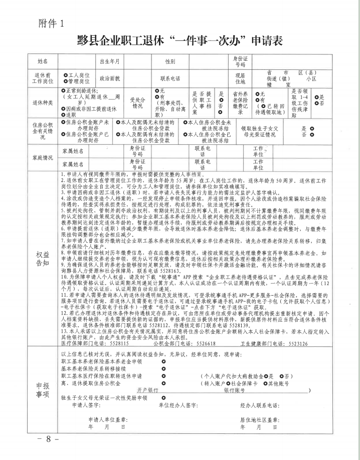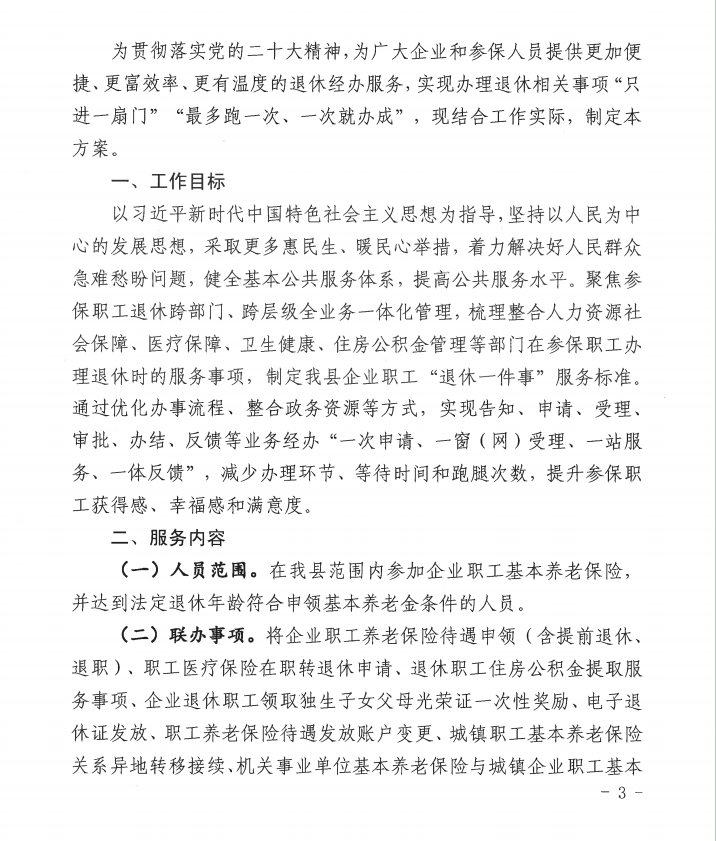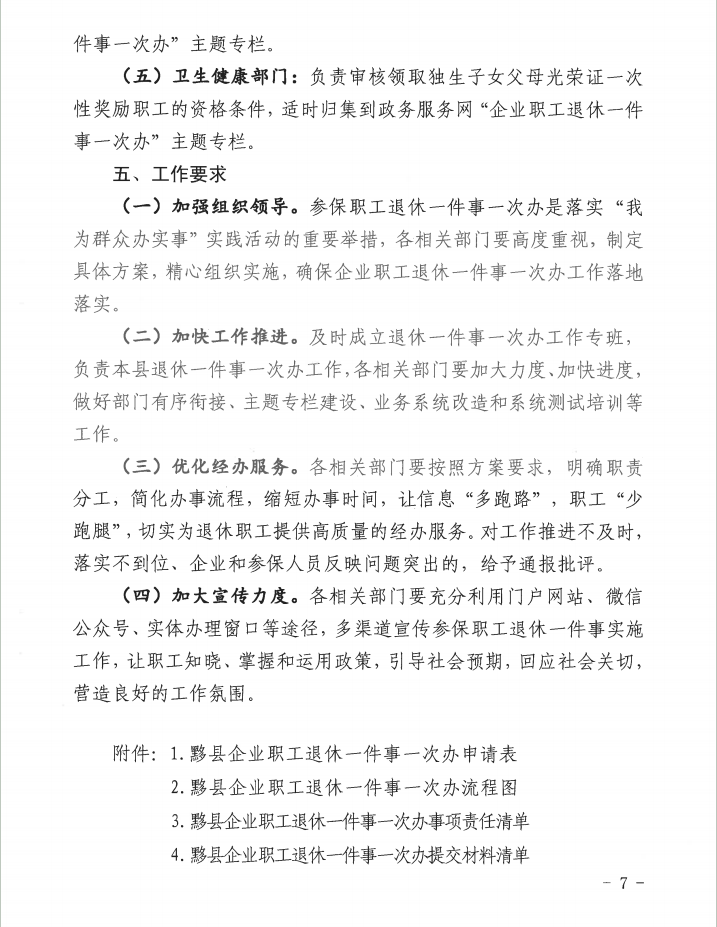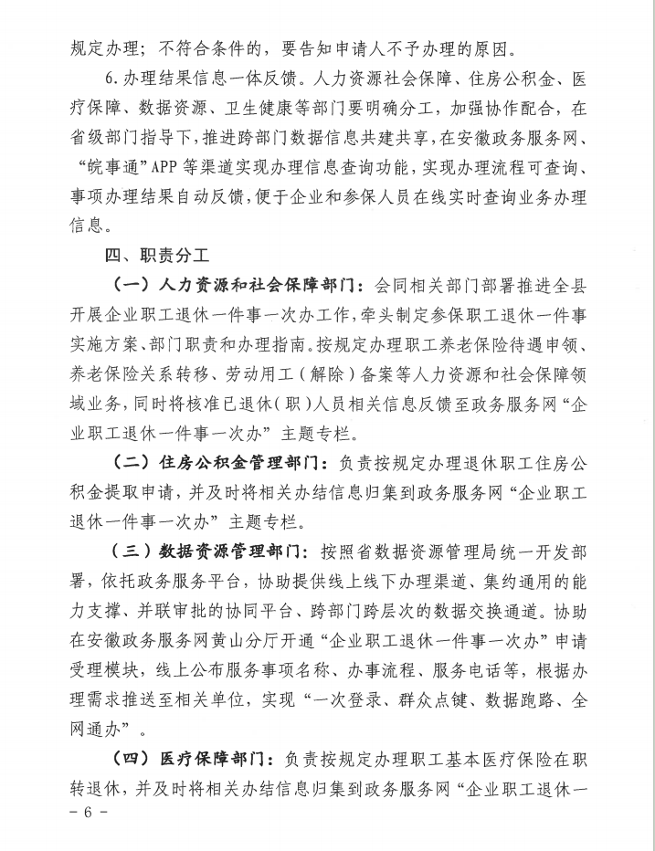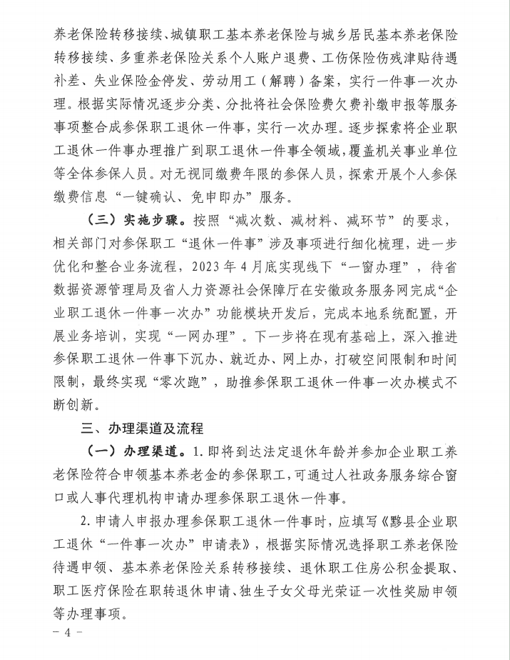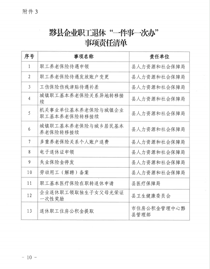 关于印发《黟县推进“企业职工退休一件事一次办”工作方案》的通知