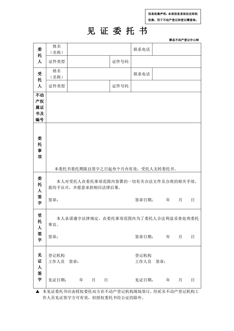 见证委托书(适用于自然人之间在登记机构现场委托)