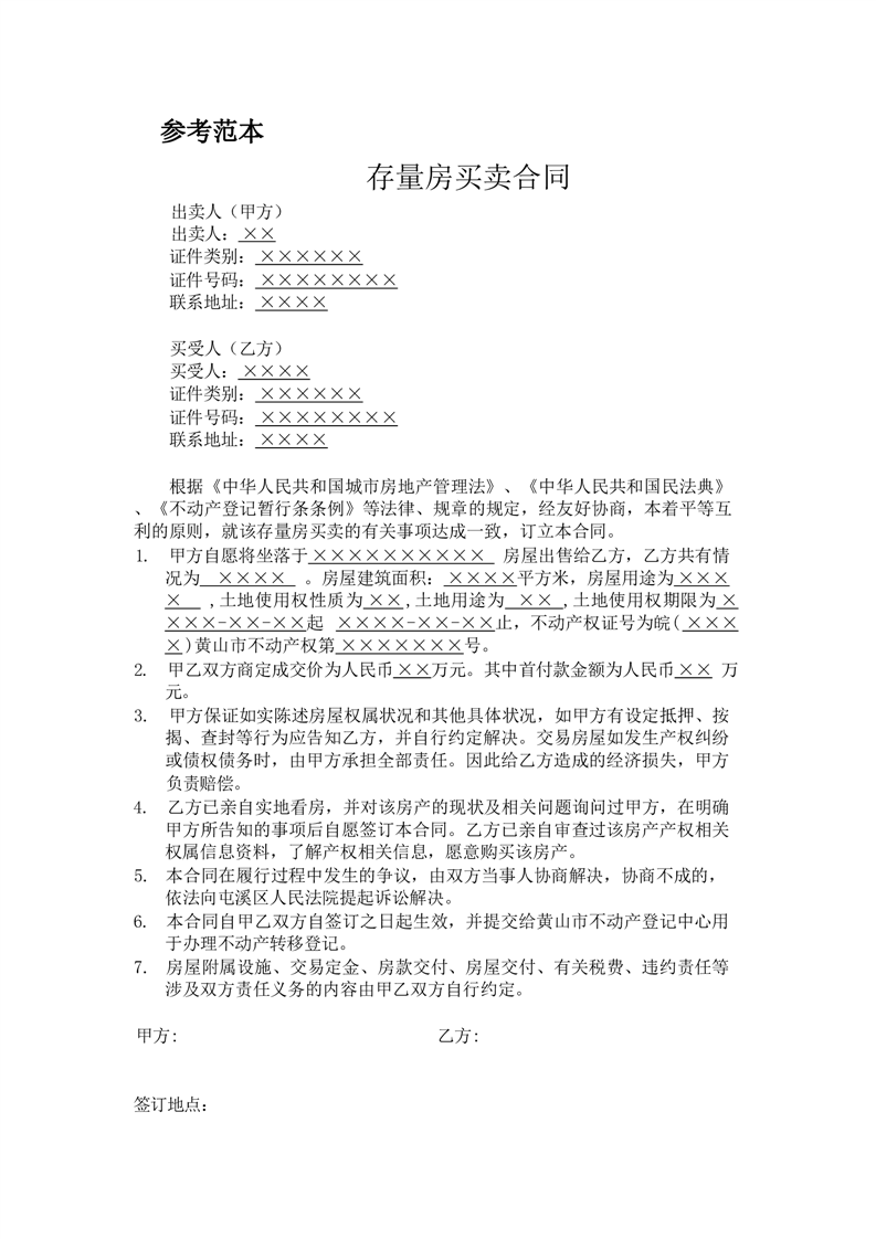 存量房买卖合同(参考范本)
