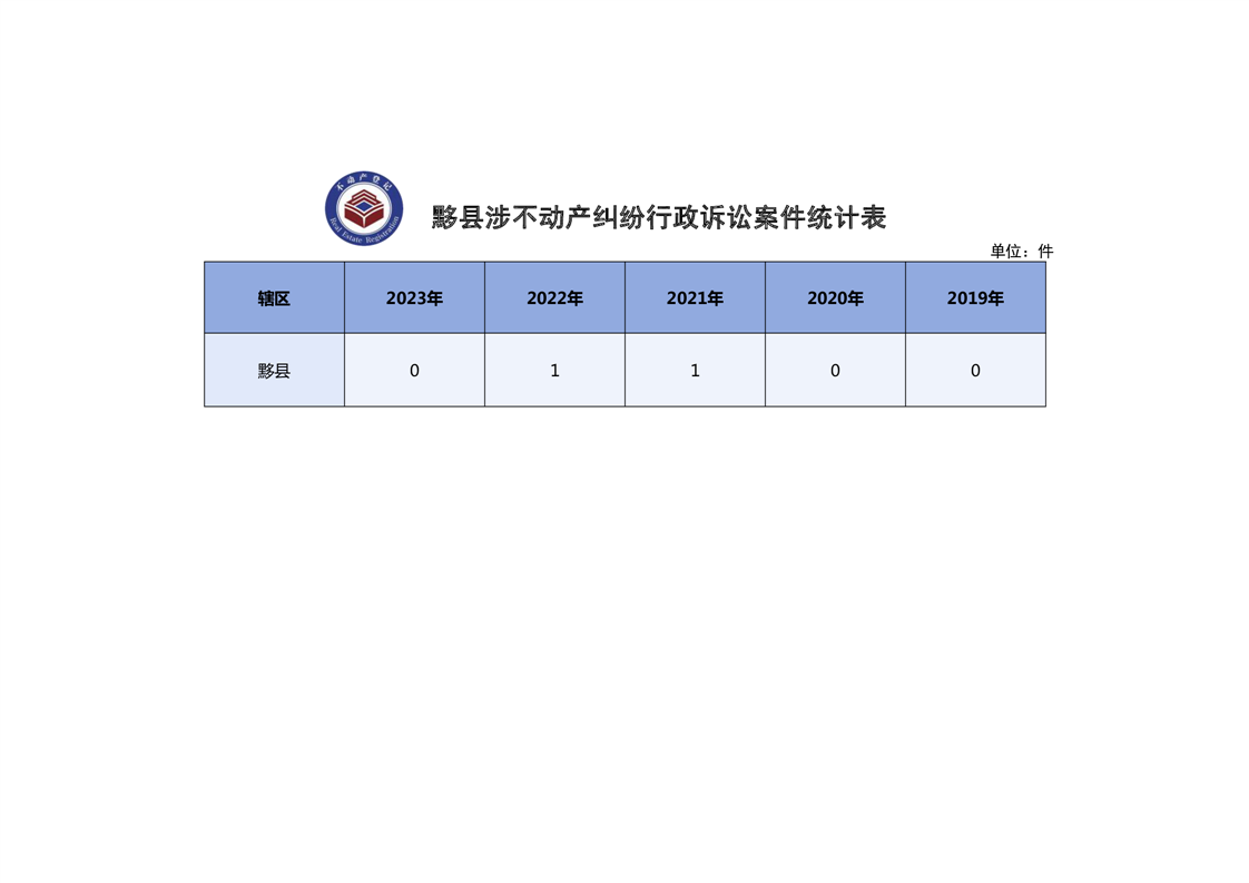 黟县近五年涉不动产纠纷(行政诉讼)分类统计数据