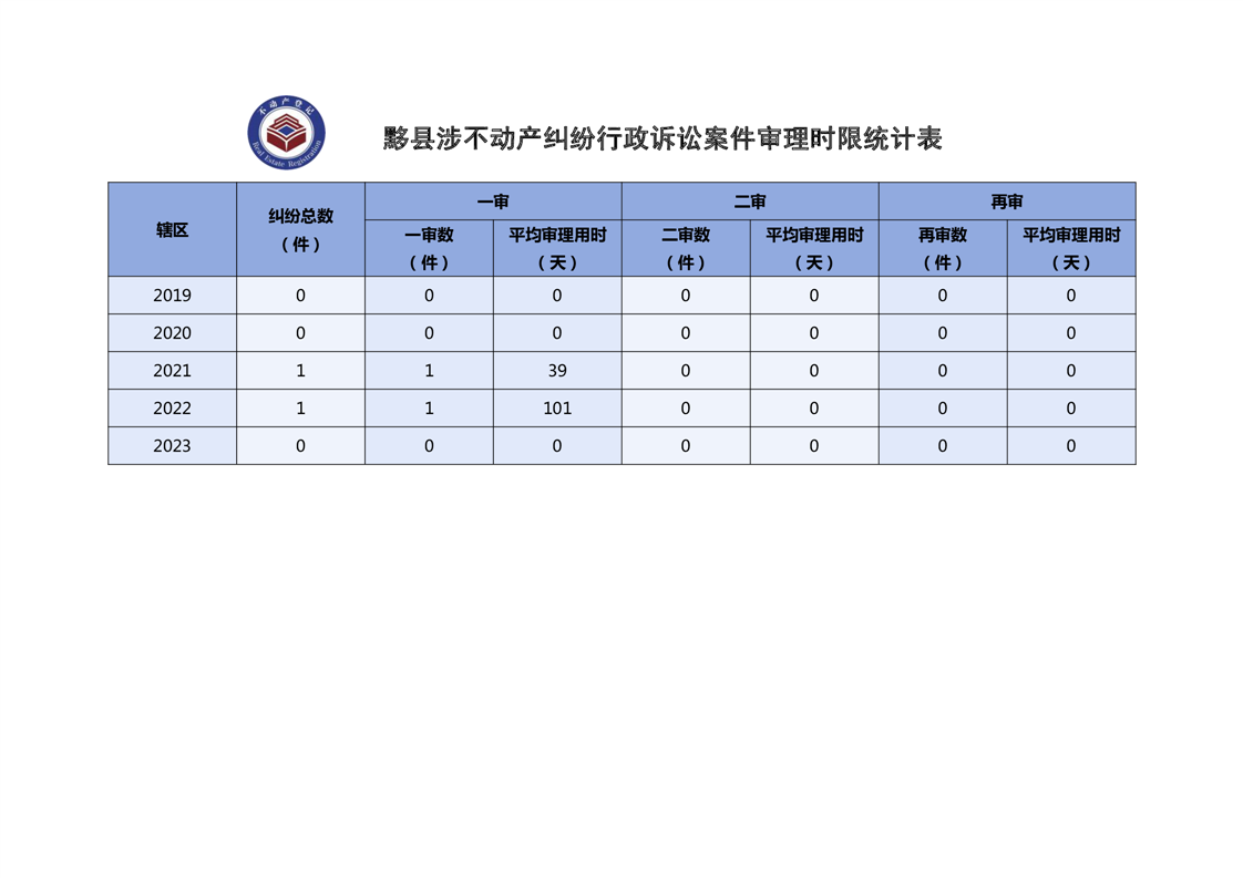 黟县近五年涉不动产纠纷(行政诉讼)时长统计数据
