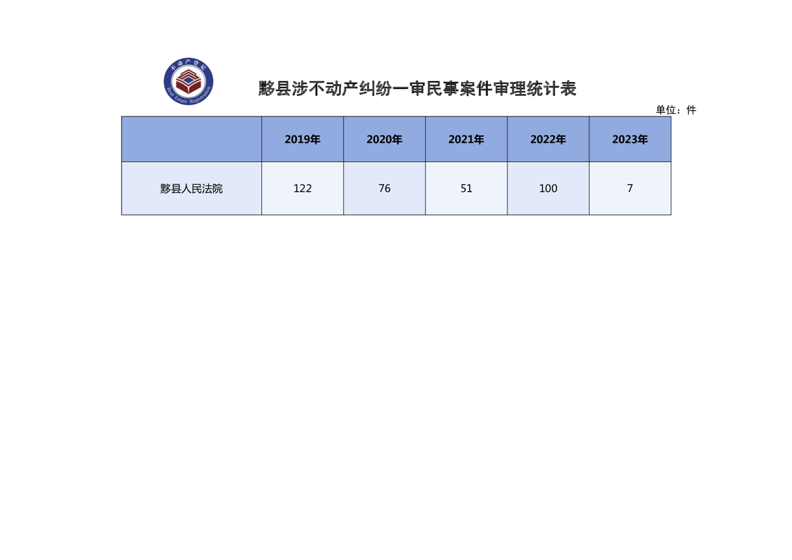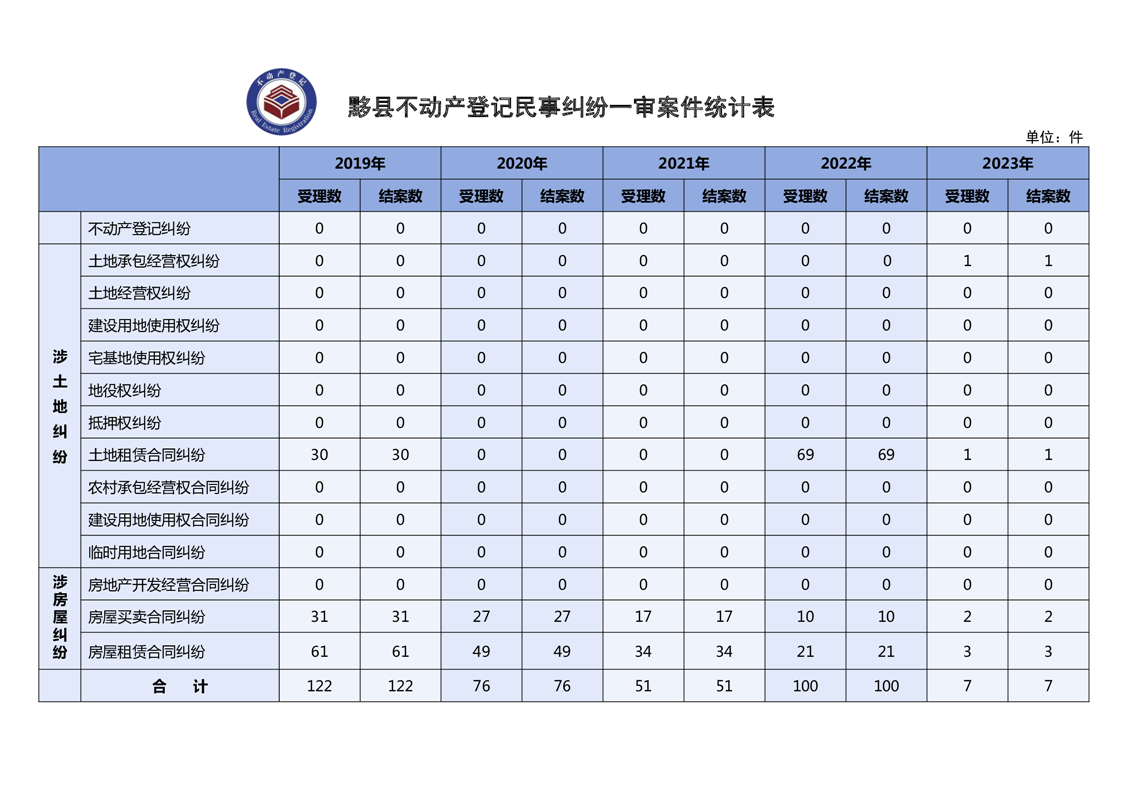 黟县近五年涉不动产纠纷(民事诉讼)分类统计数据