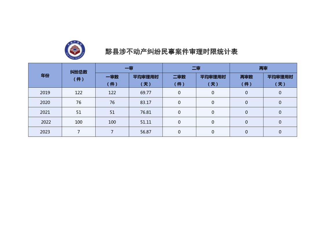 黟县近五年涉不动产纠纷(民事诉讼)时长统计数据