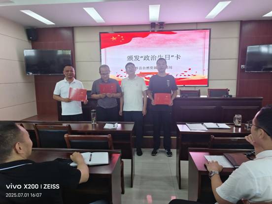颁发“政治生日”卡。支部副书记秦文辉同志为支部3名入党时间为7月1日党员颁发“政治生日”卡,贺卡上饱含党支部对党员的殷切期望的寄语,提醒党员同志注重党性修养,增强党员意识,在工作岗位上积极争先,担当作为,进一步发挥党员先锋模范作用。