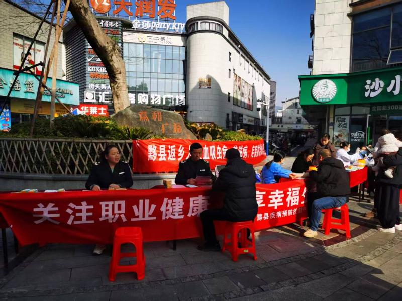 为加强农民工群体的职业病防治工作,保障其职业健康权益,2月11日下午,碧阳镇卫生院联合县疾控中心,在黟县泰和广场设立职业健康咨询展位,为广大返乡农民工开展职业病防护知识宣传与健康咨询服务。