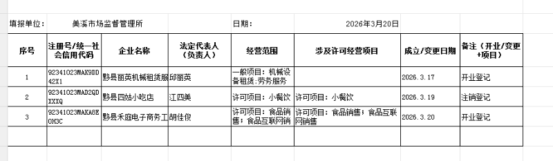 2026年营业执照基本情况公示(3.20)