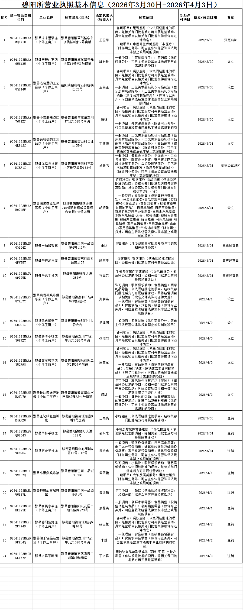 碧阳所营业执照基本信息(2026年3月30日-2026年4月3日)