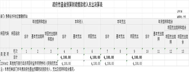 2023年度政府性基金预算财政拨款年初结转和结余0万元,本年收入4100万元,本年支出4100万元,年末结转和结余0万元。具体情况说明如下: