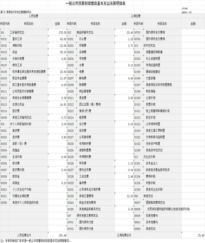 2023年度财政拨款基本支出204.97万元,其中:人员经费181.48万元,主要包括:基本工资、津贴补贴、奖金、伙食补助费、机关事业单位基本养老保险缴费、职业年金缴费、职工基本医疗保险缴费、其他社会保障缴费、住房救济费、医疗费补助、奖励金;公用经费23.49万元,主要包括:办公费、印刷费、水费、邮电费、差旅费、会议费、公务接待费、劳务费、委托业务费、工会经费、福其他交通费用、其他商品和服务支出。