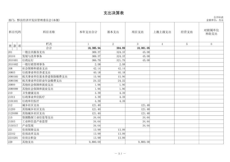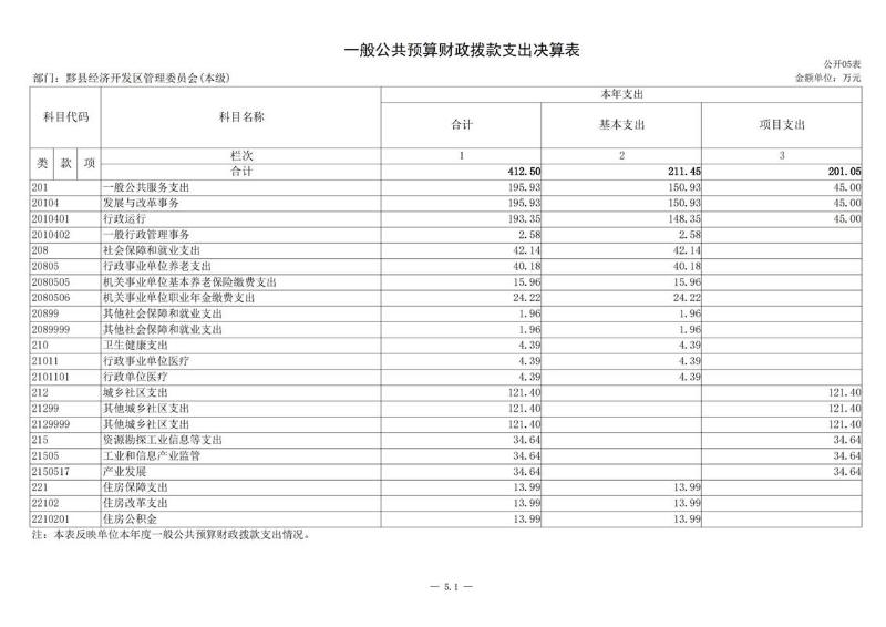 2024年度一般公共预算财政拨款支出年初预算211.75万元,支出决算为412.5万元,完成年初预算的194.81%。决算数大于预算数的主要原因:一是社保基数增加;二是其他城乡社区支出以及资源勘探信息等支出增加。其中:基本支出211.45万元,占51.26%;项目支出201.05万元,占48.74%。具体情况如下: