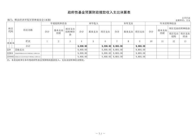 2024年度政府性基金预算财政拨款年初结转和结余0万元,本年收入9800万元,本年支出9800万元,年末结转和结余0万元。具体情况说明如下: