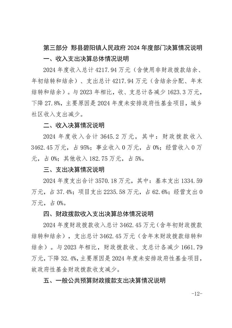 黟县碧阳镇人民政府2024年度部门决算公开说明.doc