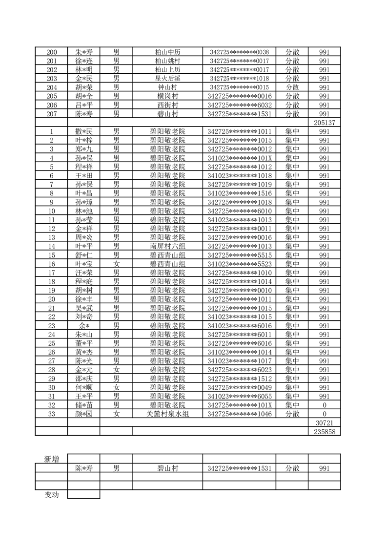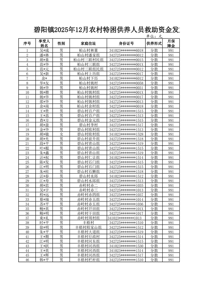 碧阳镇2025年12月农村特困供养人员救助资金发放表