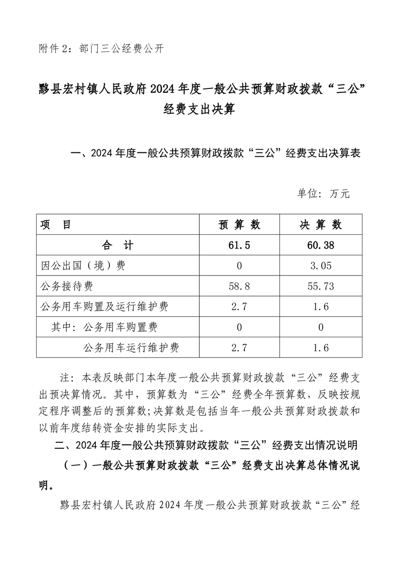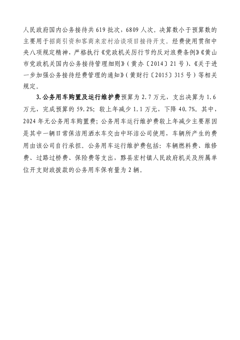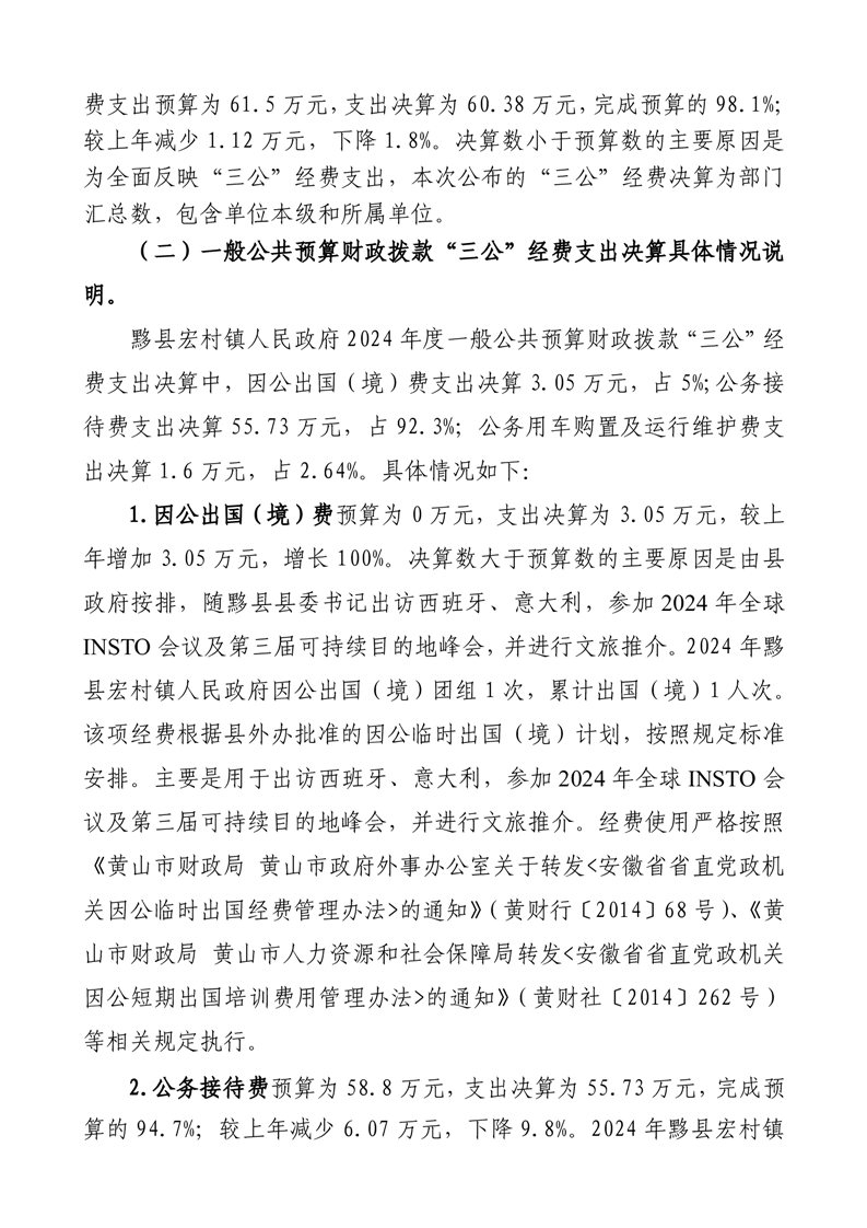 黟县宏村镇人民政府2024年度一般公共预算财政拨款“三公”经费支出决算