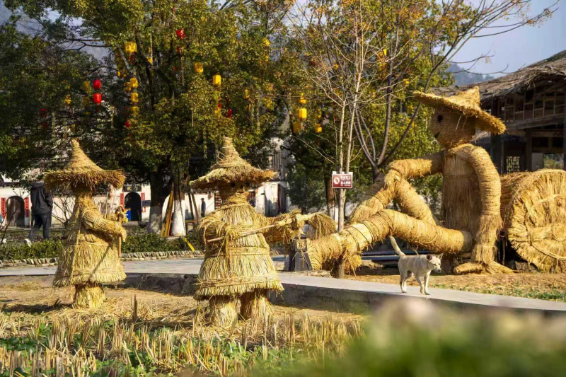 日前,在世界文化遗产地黟县西递古村落,一批以徽派文化、田园生活为主题的创意稻草人悄然走红,成为众多游客慕名而来的新晋打卡点。