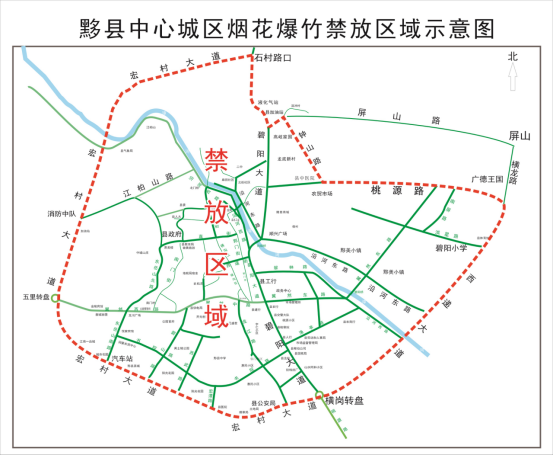 附:黟县中心城区烟花爆竹禁放区域示意图