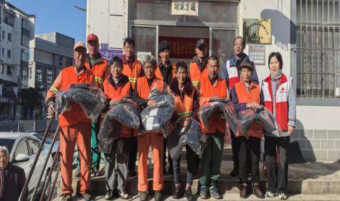 11月18日,寒潮来袭,气温骤降,黟县红十字会走上街头,开展了一场暖心关爱行动,为18名坚守在城市一线的“美容师”们—环卫工人送去了棉服和御寒手套,用实际行动诠释了关爱与尊重。