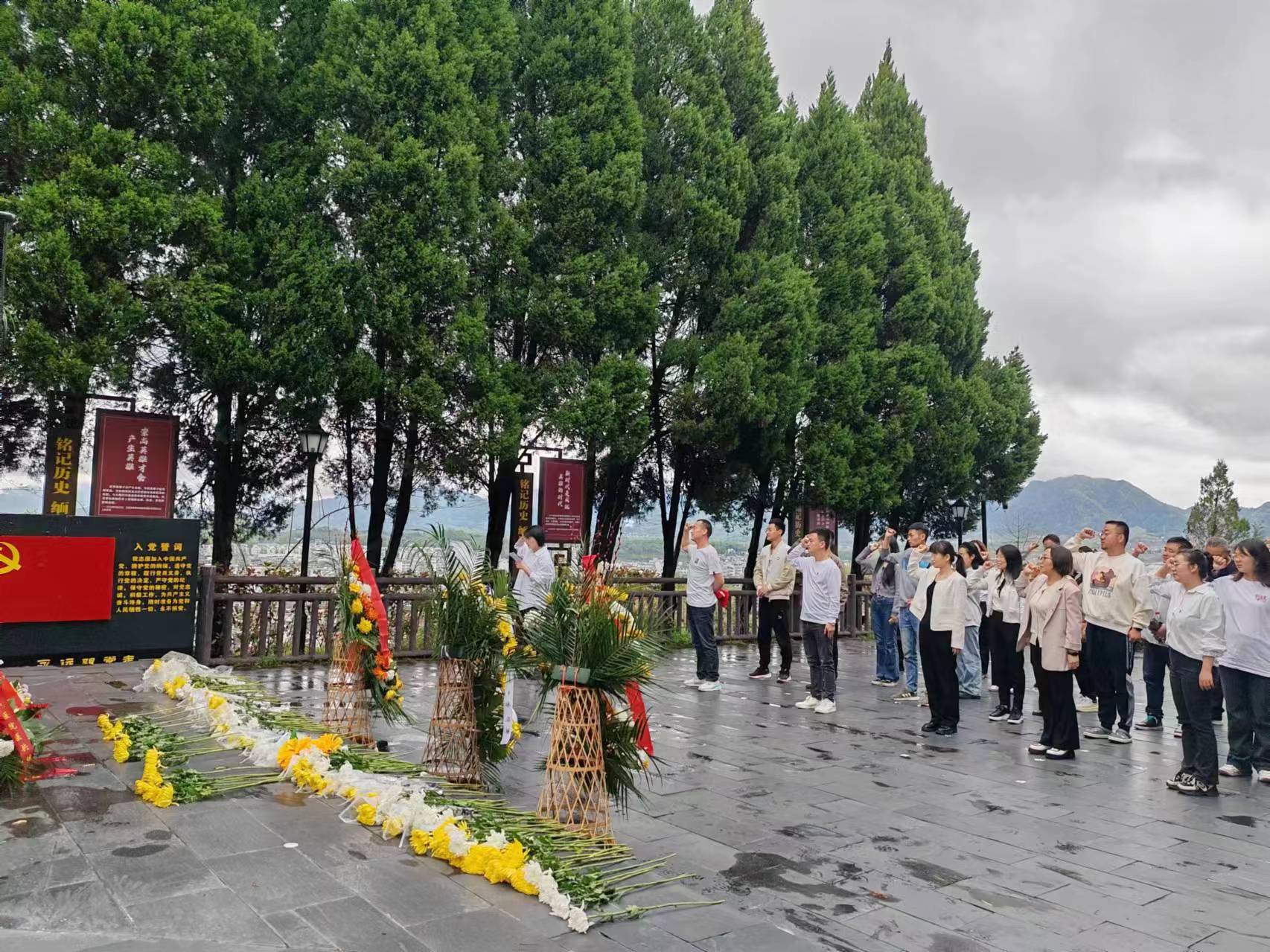 在纪念碑前,党员干部向革命烈士默哀鞠躬、敬献鲜花、瞻仰革命烈士纪念碑,党员干部重温入党誓词,以铿锵有力的誓言做出对党的庄严承诺,共同缅怀英烈伟大事迹,向革命英烈致以最崇高敬意,表达对革命先烈的崇高敬仰和无限哀思。